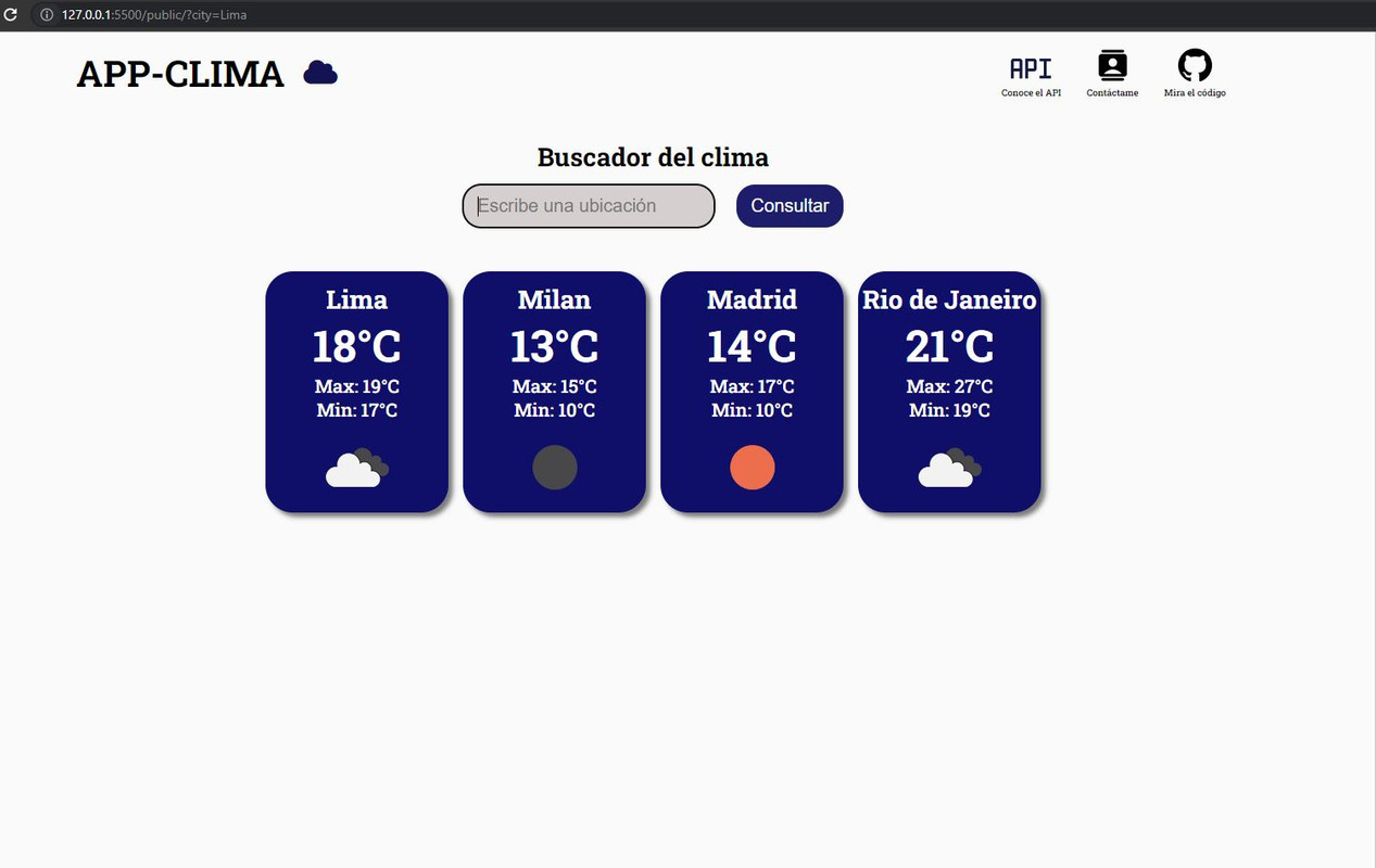 Esta app web trae la información de un API para obtener información del clima en tiempo real de una o varias ciudades.