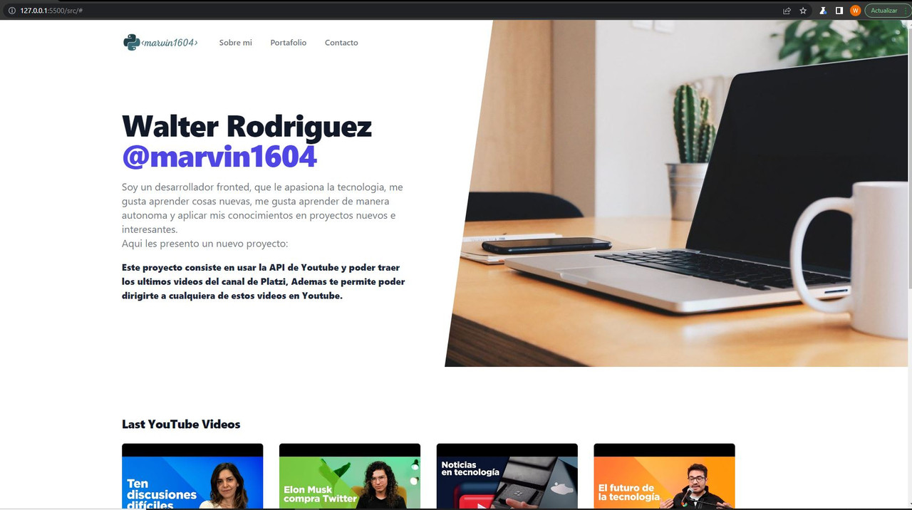 Este proyecto consiste en usar la API de Youtube y poder traer los ultimos videos del canal de Platzi